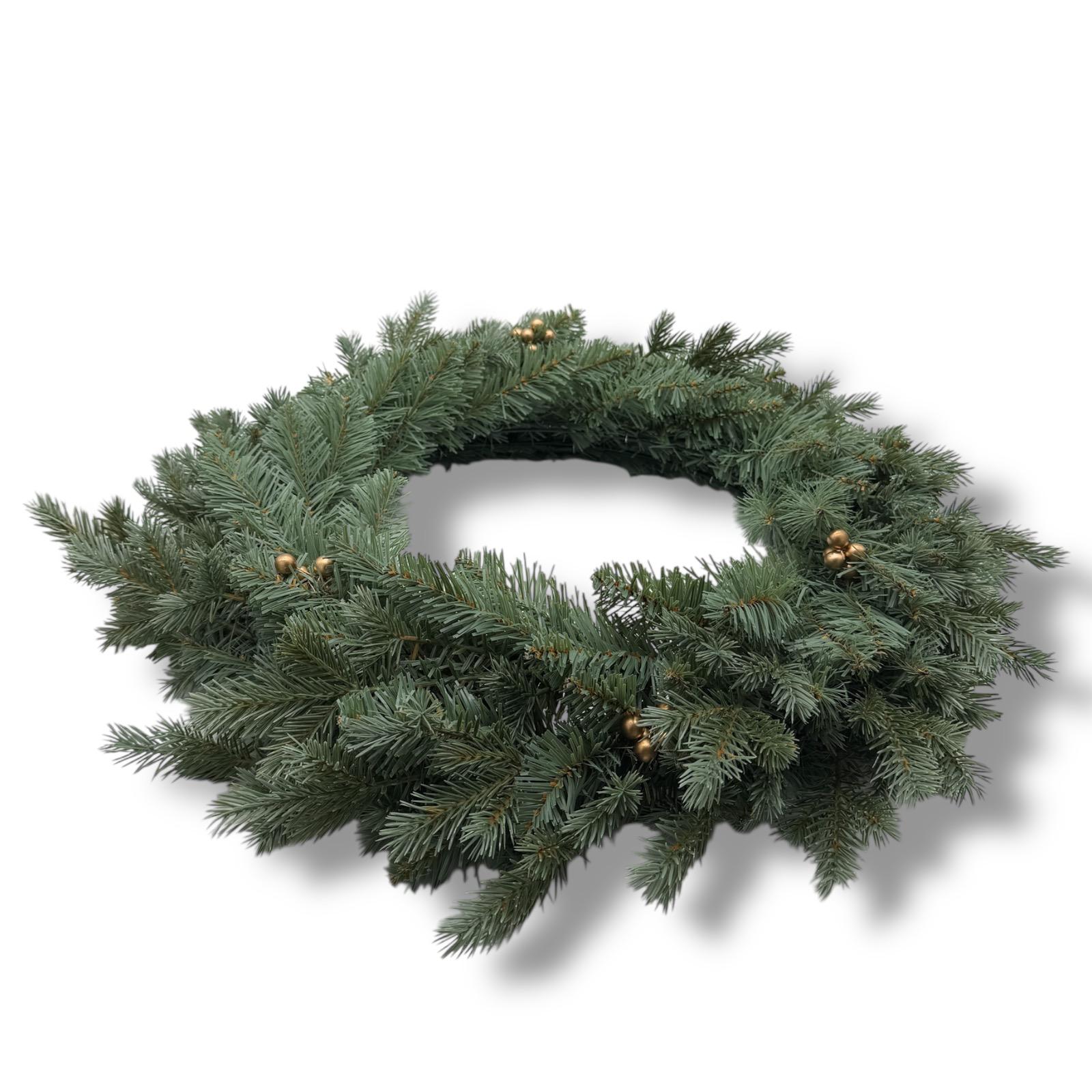 Coronita Craciun Ø 60 cm din brad artificial, ideala pentru usa sau interior. Aspect natural, design dens si elegant, perfecta pentru decoruri festive.