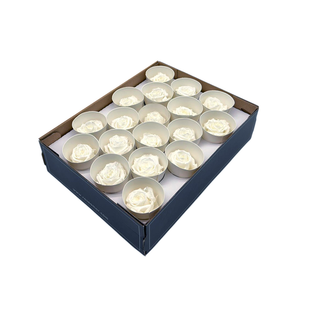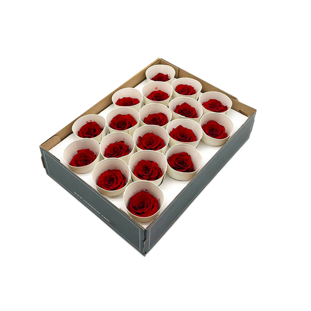 Cutie cu 18 trandafiri criogenati XS Mixed, ideala pentru florarii si aranjamente florale compacte. Trandafiri criogenati naturali, en gros.