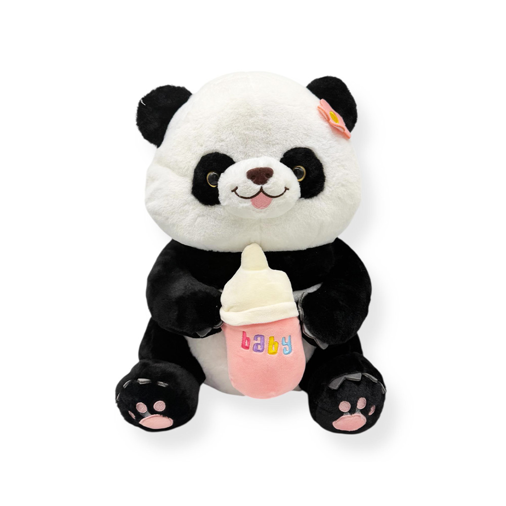 Jucarie de plus Panda baby cu biberon roz (32, 43 si 50 cm)