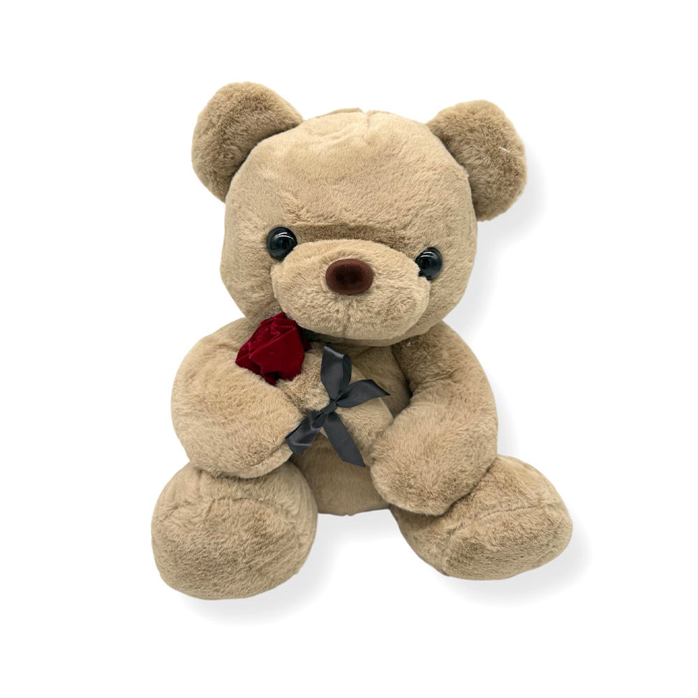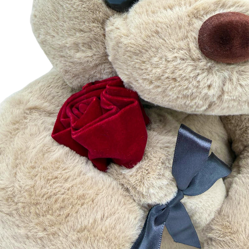 Ursuletul de plus bej cu trandafir catifelat este o jucarie de plus creata special pentru a transmite afectiune si apropiere. Culoarea bej ofera un aspect cald si natural, iar trandafirul rosu completeaza perfect mesajul de dragoste, facand acest produs o alegere inspirata ca cadou Valentine’s Day.