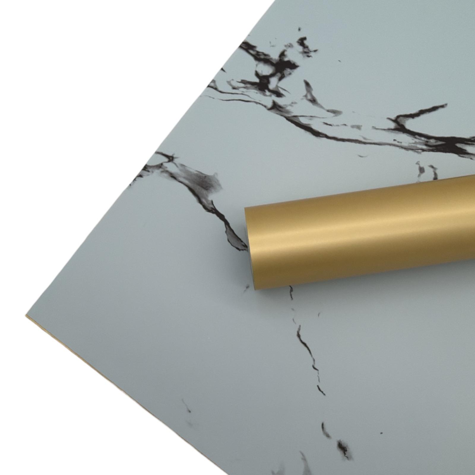 Fiecare coala are dimensiunea de 58 x 58 cm, fiind potrivita pentru buchete de dimensiuni variate, cutii cadou, pachete personalizate si proiecte decorative. Aspectul mat combinat cu modelul “stone” si insertiile aurii confera unicitate si eleganta fiecarui aranjament realizat.