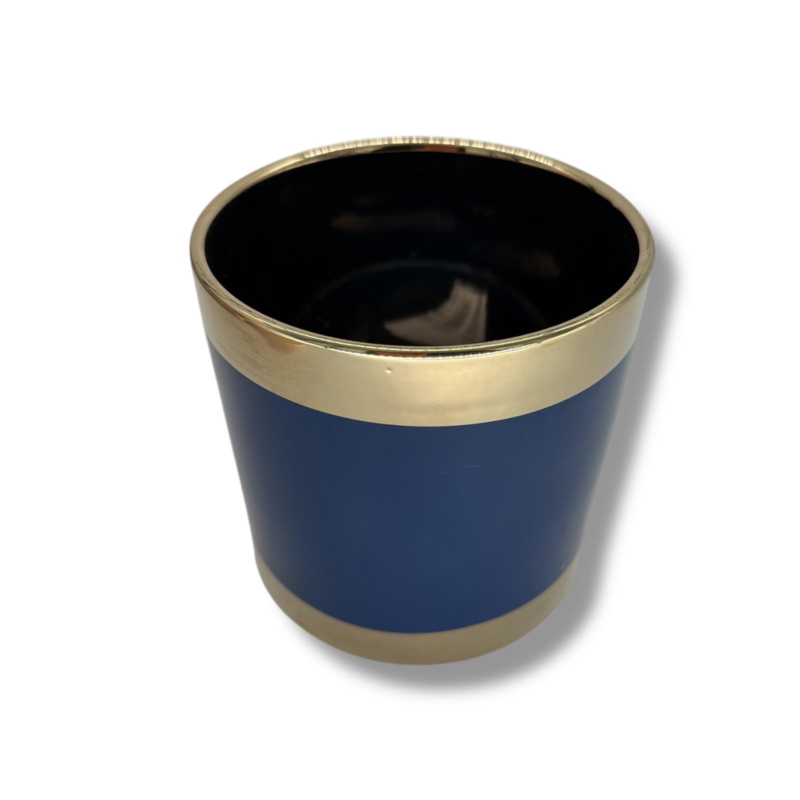 Acest vas ceramic modern în nuanță de albastru intens, completat de accente aurii elegante, este o piesă decorativă ideală pentru spații contemporane și interioare rafinate. Designul său minimalist, evidențiat de cele două benzi aurii: una la bază și una în partea superioară, transformă vasul într-un element de decor versatil și stilat.