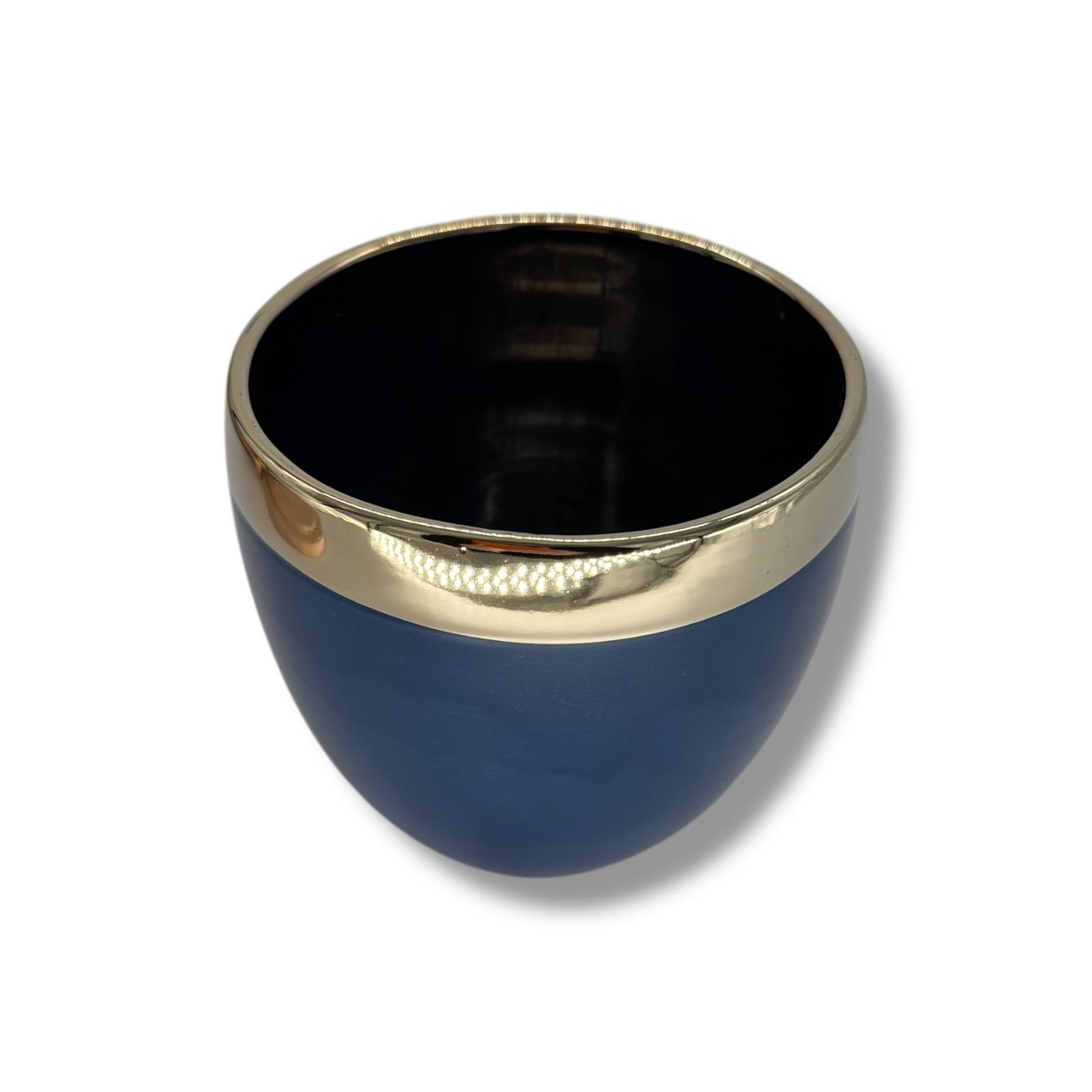 Ghiveci ceramic albastru sau negru cu auriu, perfect pentru plante și aranjamente florale. Design modern, lucios, ideal pentru decor interior elegant.