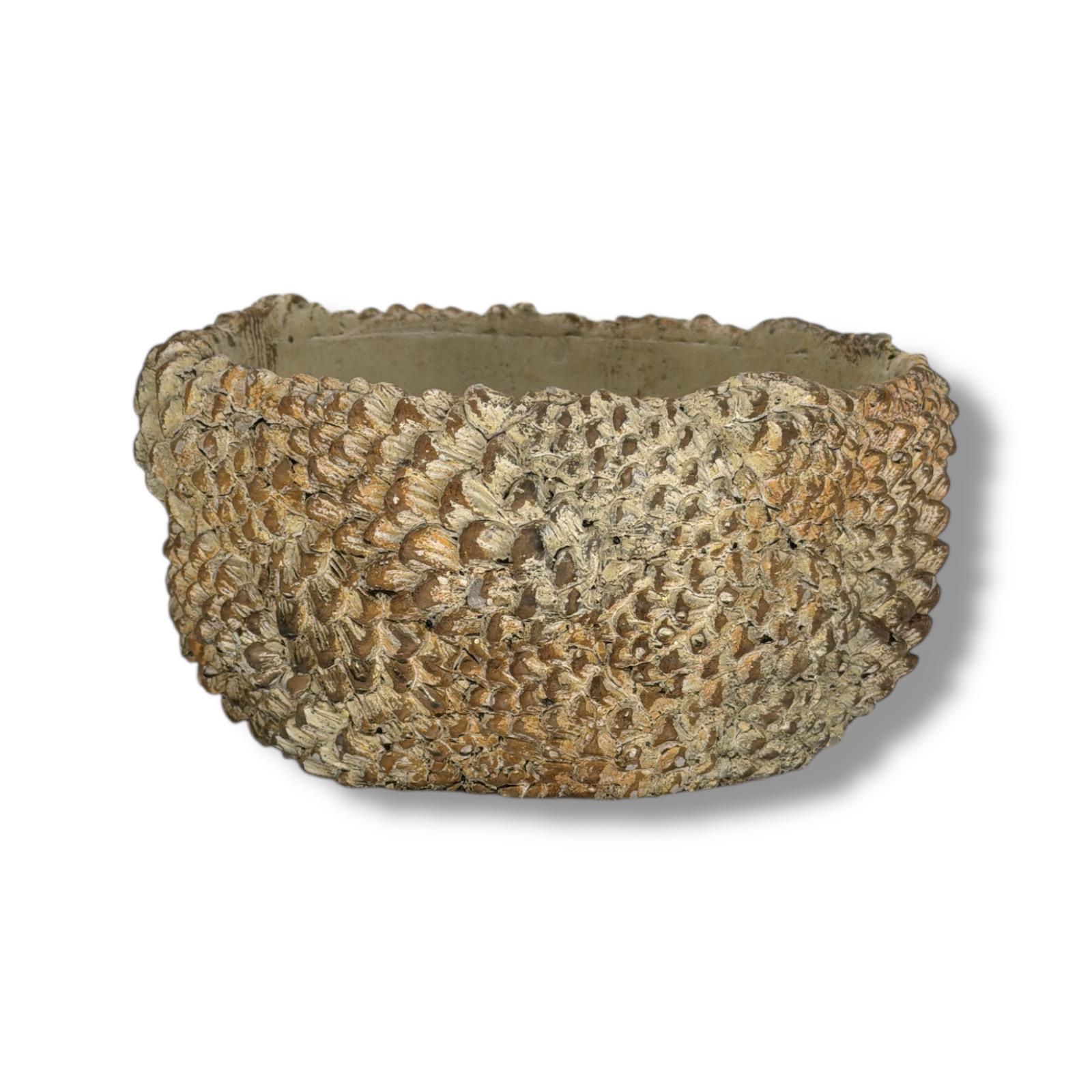 Acest vas decorativ din ceramică, cu textură realistă de conuri, este o alegere excelentă pentru aranjamente florale, plante ornamentale sau decoruri tematice de sezon. Modelul atent lucrat evidențiază detalii naturale, oferind un aspect rustic și autentic, perfect pentru spații interioare inspirate din natură.