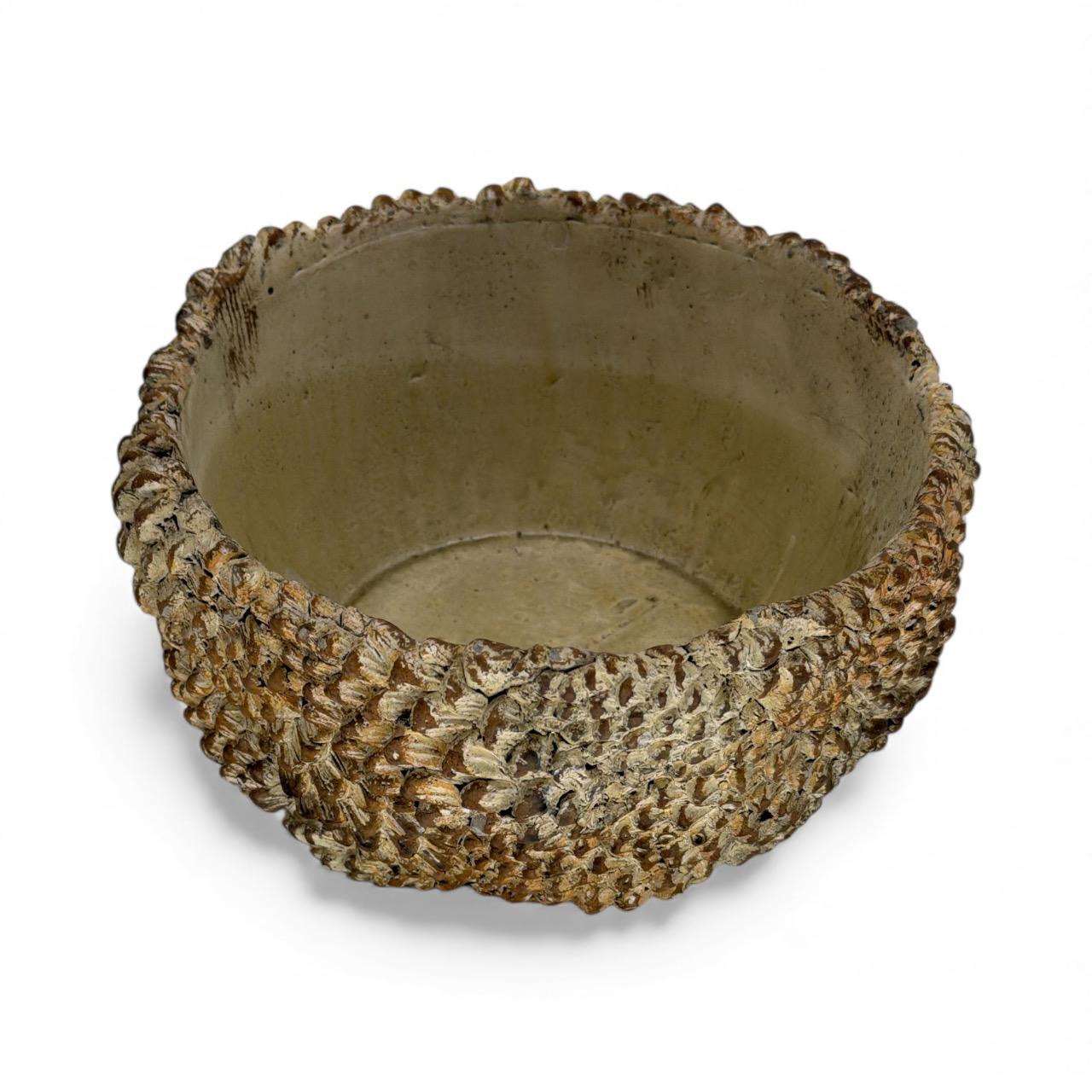Vas din ceramică cu textură de conuri, culoare bej, ideal pentru aranjamente florale, plante și decor rustic.